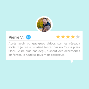 Le four est très bien noté que se soit sur Ooni ou sur Amazon, principal revendeur de ce four sur le marché français. Les clients sont satisfaits par la performance du four, par la livraison et le sérieux de la société.