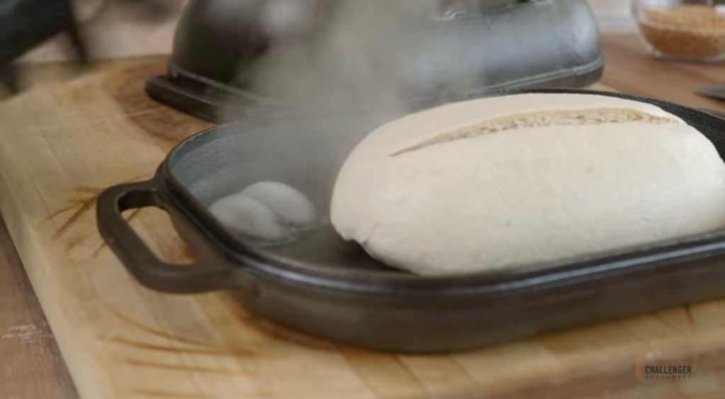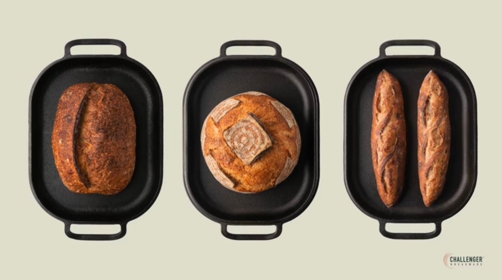 La cocotte en fonte The Challenger Bread Pan est l’une des meilleure cocotte en fonte du marché. Elle est spécialement conçue pour la cuisson du pain et de baguettes.