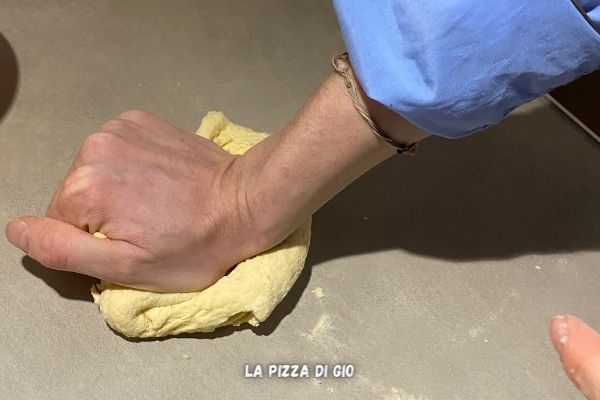 Une fois toute l’eau ajoutée à la semoule, il est temps de pétrir la pâte. Pour cela, rien de plus simple, remontez vos manche et pétrissez jusqu’à l’obtention d’une belle pâte bien lisse.