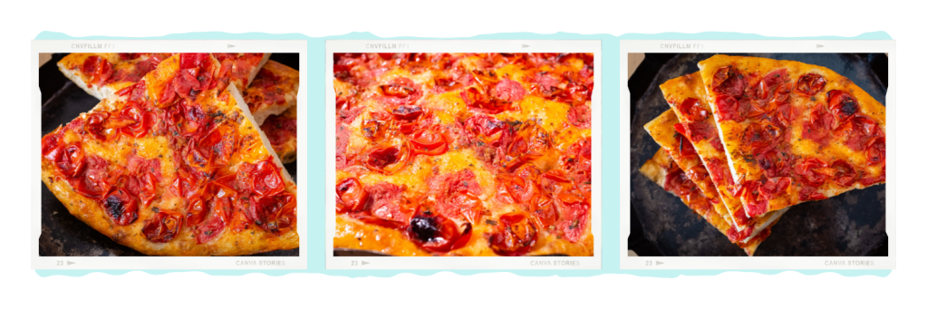En ce qui concerne le plat, il est nécessaire d’utiliser un plat en tôle italien. Ce plat apportera le goût caractéristique de la focaccia italienne. La pâte va caraméliser en contact de la tôle et de l’huile d’olive pour une croûte croquante et moelleuse.