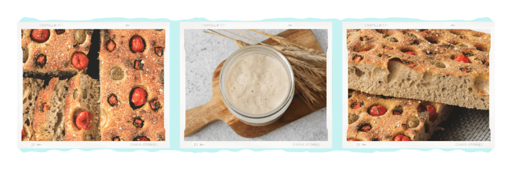 Il est tout à fait possible de réaliser une focaccia au levain. Pour réaliser une focaccia au levain, vous devrez remplacer la quantité de levure par votre levain. La durée de pousse sera plus longue qu’avec de la levure. La quantité de levain dépendra de la puissance de celui-ci. Une focaccia doit être aérée, il faut que votre levain soit puissant pour permettre le développement de gaz.