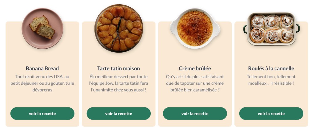 En manque d’inspiration pour vos plats du quotidiens ? La plateforme propose des inspirations culinaires très intéressantes, le tout grâce à un partenariat avec Jow. La plateforme vous propose un grand nombre de recettes que vous pourrez réaliser avec les produits disponibles sur la plateforme.