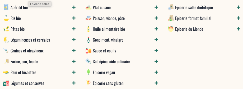Greenweez est l’une des plus grosse épicerie BIO en ligne. Elle propose un catalogue de produits très important :