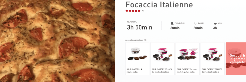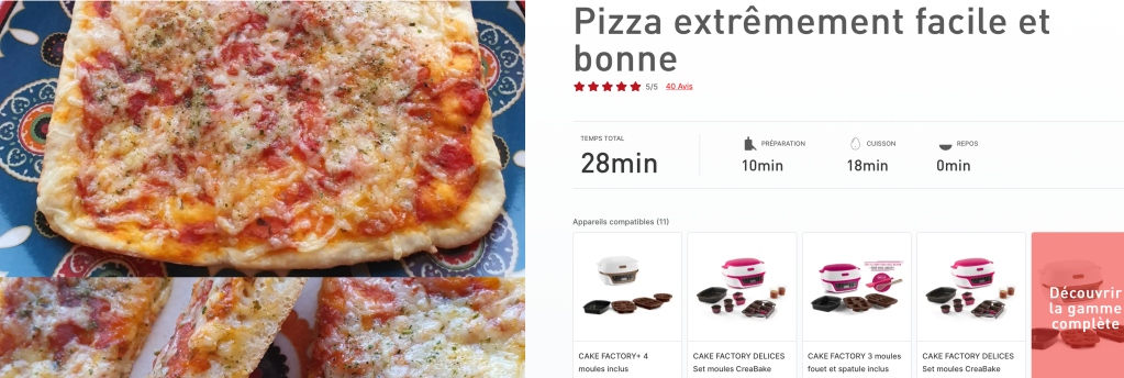 Il est également possible de réaliser des recettes salées dans ce four, vous pourrez donc réaliser de nombreuses recettes italiennes sucrées et salées parmi les 5 000 recettes répertoriées sur le site de Tefal et sur l’application.