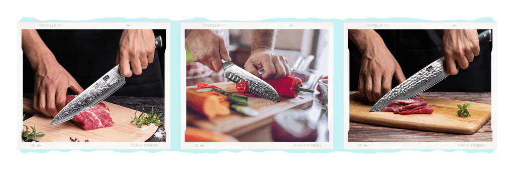 Les dimensions d’un couteau guidera vos préparations culinaires, vous ne couperez pas la même chose avec un petit et un grand couteau. Si vous souhaitez un couteau maniable et précis, choisissez un petit couteau, si vous cherchez de la performance et de la coupe, choisissez un couteau plus grand. Tout dépend de se que vous souhaitez cuisiner. En règle général, un cuisinier possède au moins 3 tailles de couteaux différents dans sa cuisine pour s’adapter le mieux aux préparations. Certaines marques proposent même des kits complets de cuisine.