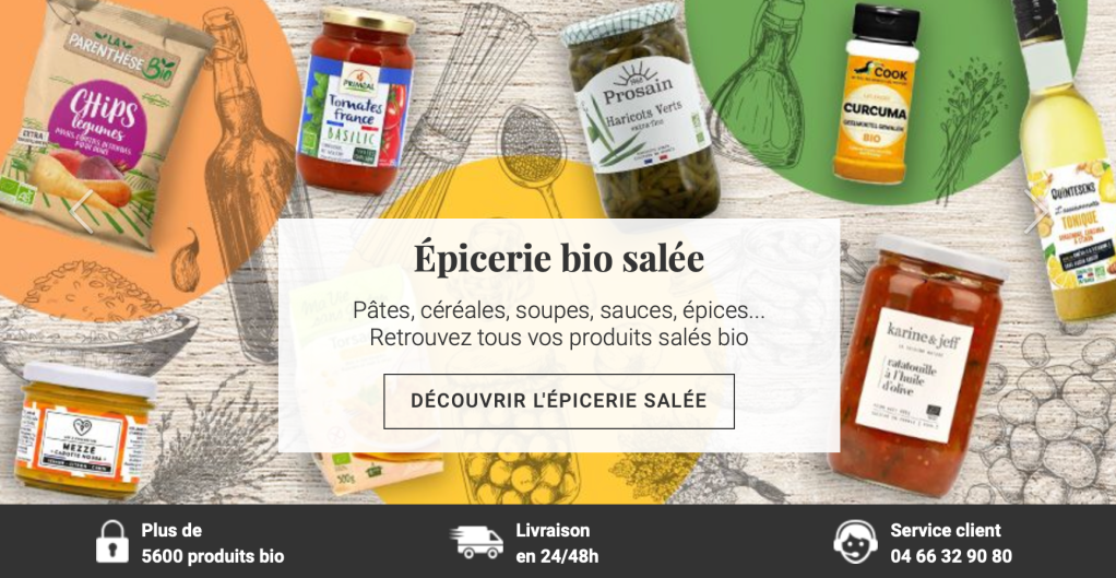 Avec plus de 170 000 références, Greeweez est l’épicerie BIO en ligne qui propose le plus de produits. Grâce à sa marketplace, cette épicerie permet d’ajouter à son catalogue un grand nombre de références.