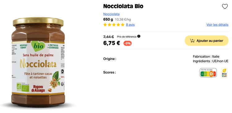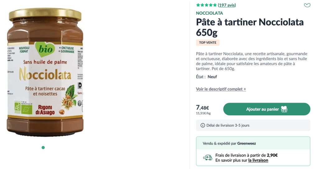 La pâte à tartiner est à 6,75€ sur La Fourche contre 7,48€ sur Greeweez.