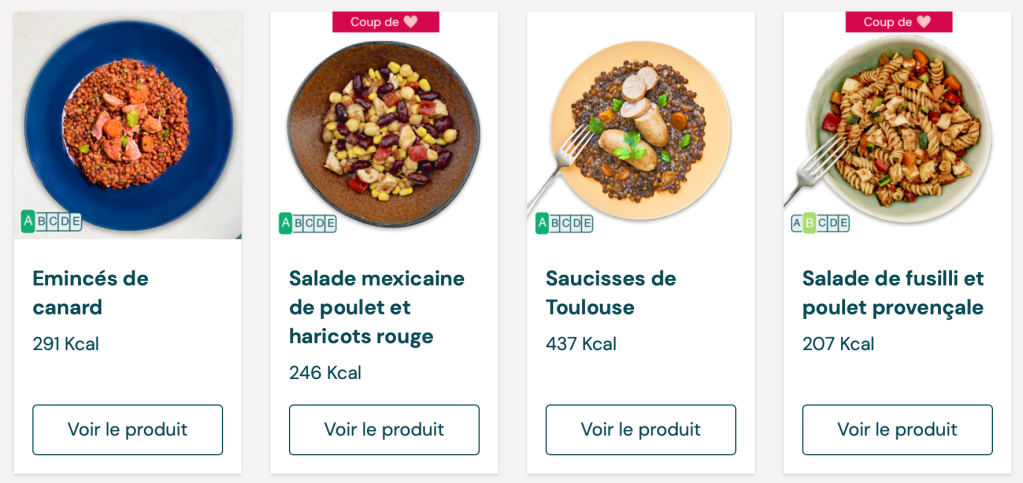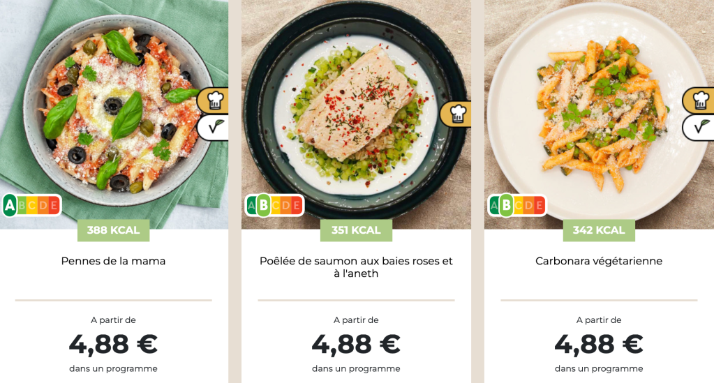 Les ingrédients sont dans l’ensemble de bonne facture, avec un nutriscore A pour la majorité des plats, Les recettes sont standards et plus adaptées à des personnes qui souhaitent rester simple dans leur programme.