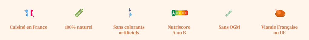 Les ingrédients du programme Qilibri sont de qualités, garantis naturels, sans colorants artificiels, sans OGM avec des viandes françaises ou d’Europe, le tout avec un nutriscore A ou B pour l’ensemble des recettes.