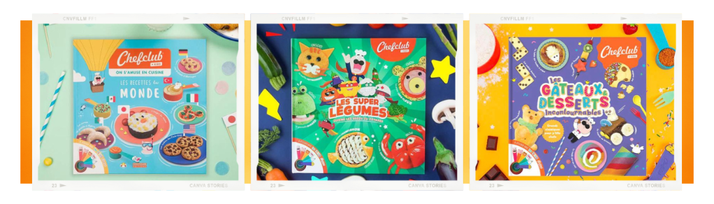 Chefclub ne propose pas que des ustensiles de cuisine, la marque propose également des livres de recettes spécifiquement adaptés aux enfants avec des recettes simples et facile à exécuter pour un enfant. Chaque livre possède un thème différent :