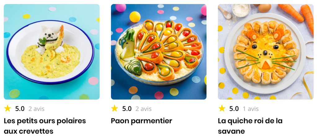 La plateforme possède également de nombreuses recettes directement sur leur site internet, vous permettant de varier les plaisirs entre les desserts et les petits plats frais. Il est possible de réaliser plusieurs types de recettes : de l’entrée, au plat en passant par le dessert.