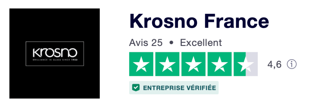 La société Krosno est l’un des leader dans la vente de produits cristallins avec une satisfaction client importante. Elle mérite d’une bonne note sur TrustPilot avec un 4,6/5, les clients sont satisfaits des produits mais également de la livraison.