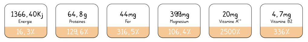 Voici la composition pour 100g de spiruline de Vegalia :
