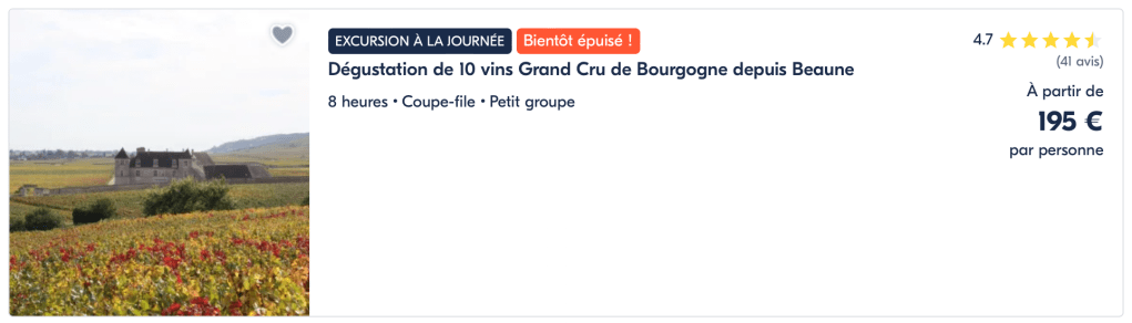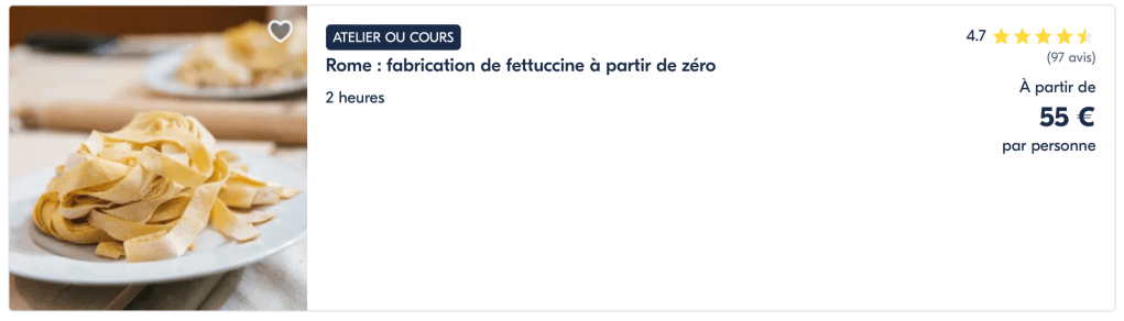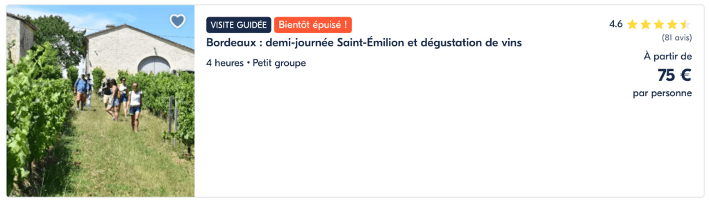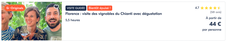 Toutes ces activités sont disponibles à la réservation en ligne sur GetYourGuide. Il s’agit du leader de la réservation d’activités dans le monde : atelier culinaire, visite de vignobles mais également beaucoup d’autres activités comme une excursion en bateau, le survol d’une région en Montgolfière.