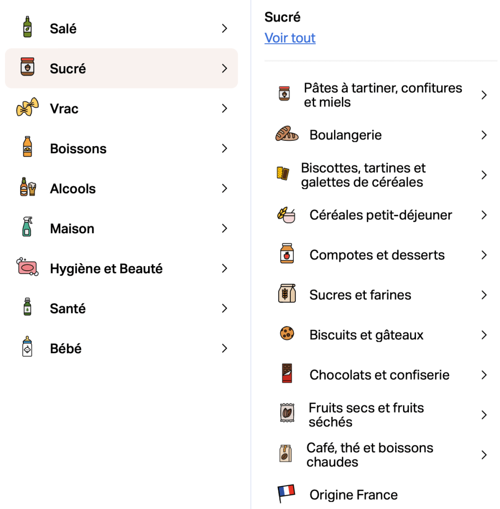 Mes commandes sont régulières avec des produits du quotidien qui reviennent assez régulièrement comme du riz, de la sauce tomate ou encore de la pâte à tartiner. de temps en temps j’achète des produits tel que du café, du vinaigre, de l’huile ou encore certaines boissons.